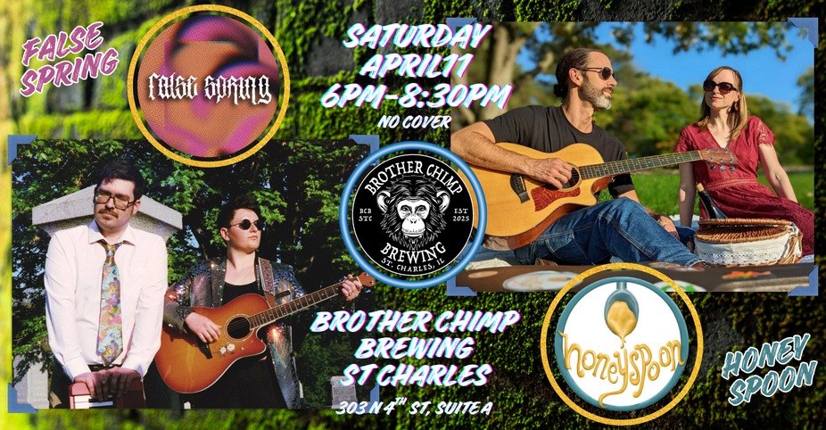 -Influenced by jazz, funk, soul, and grooves from around the world, Honeyspoon has cultivated a unique sound that will get people out of their seat and tapping their feet. This husband and wife duo brings an electric stage presence to an acoustic setting. -False Spring started as a pop rock project between two friends. They have fondly dubbed their personal genre as "Midwest Surf Rock", speaking to the catchy hooks and carefree tone of their original music.